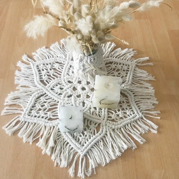 Centro de Mesa Mandala Circular de Hilo de Algodón Tejida a Macramé