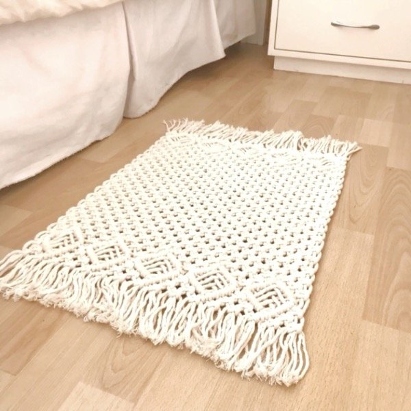 Centro de Mesa / Alfombra / Carpeta rectangular de Hilo de Algodón Tejida a Macramé