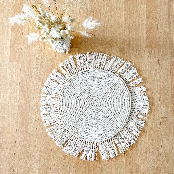 Centro de Mesa Redondo Tejido a Macramé en Hilo de Algodón color Crudo.