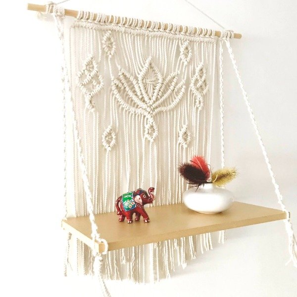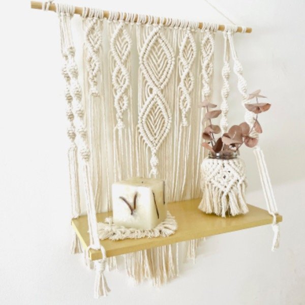 Repisa estilo Tapiz en Madera e Hilo de Algodón a Macramé.