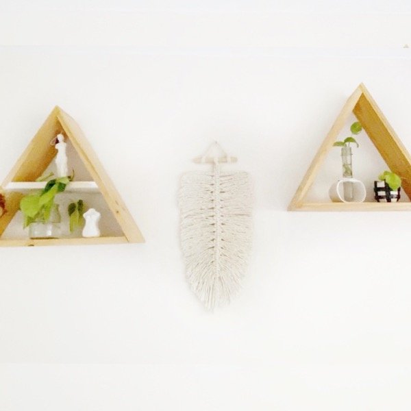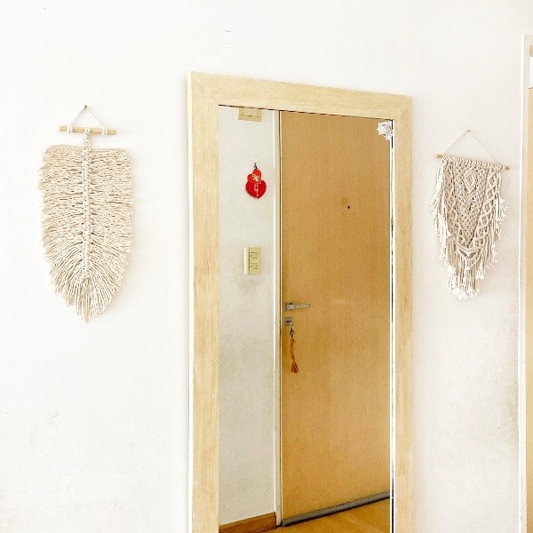 Hoja Macrame realizada en hilo de Algodón sobre varilla de madera de 15 cm. de ancho.