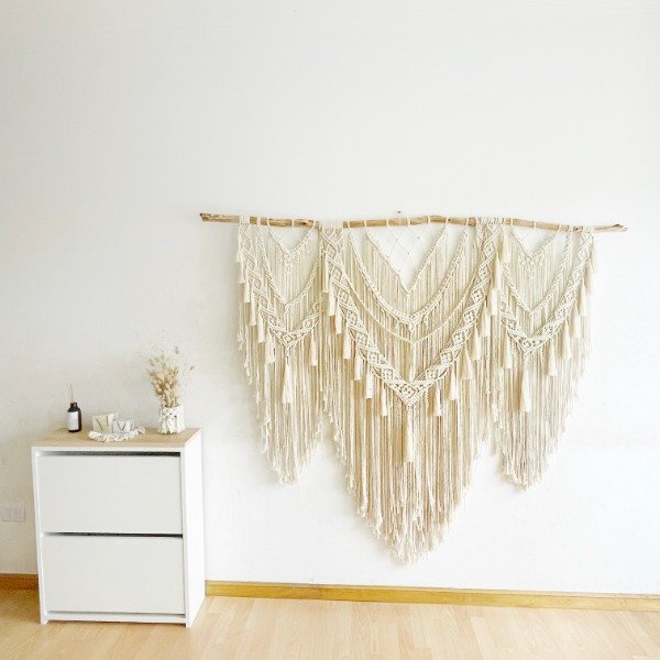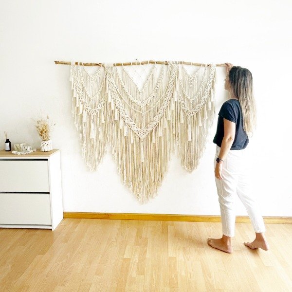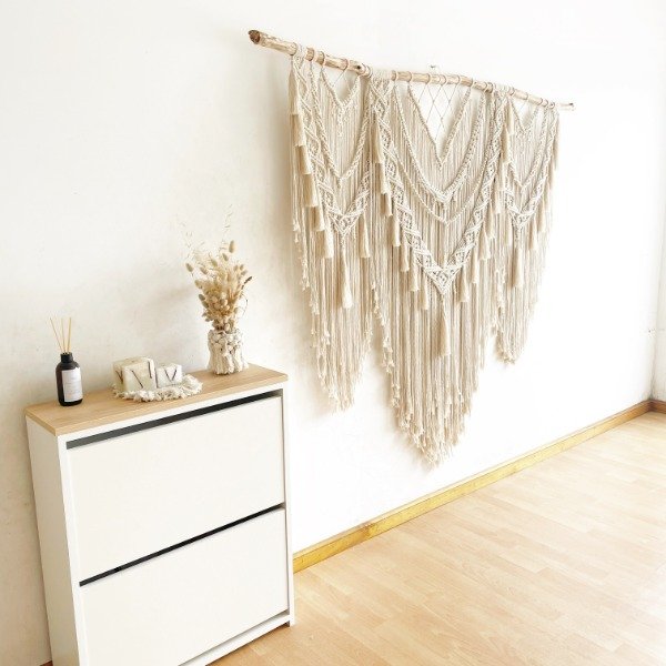Tapiz Macramé realizado con Hilo de Algodón en color Crudo.